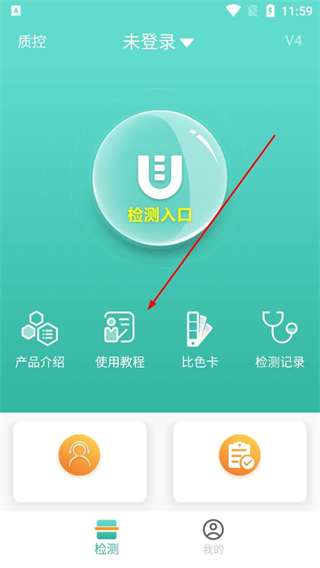 2、登录后进入质控页面找到使用教程选项,点击该选项进入对应页面,查看吴试纸APP的使用教程视频及文字说明内容。