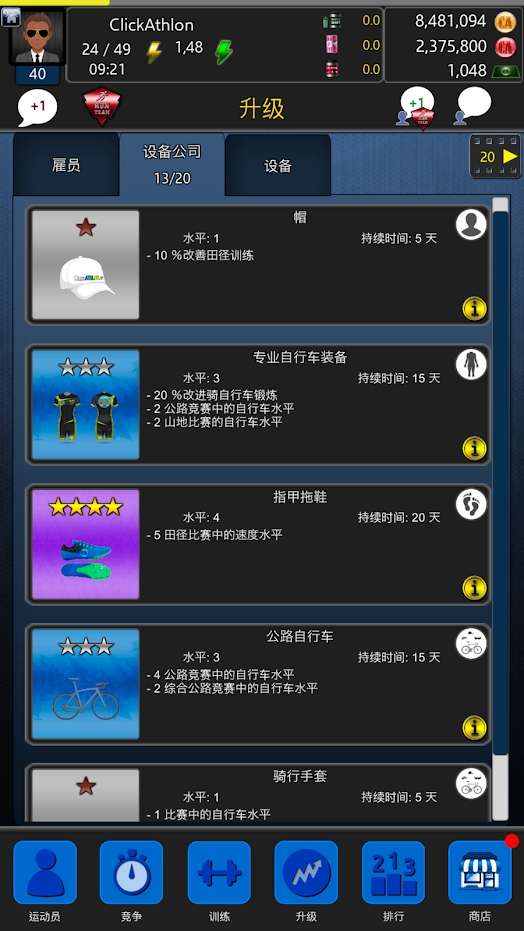 3、在赛季结束进入休息的阶段大家可以给远动员们一些补品的分发;