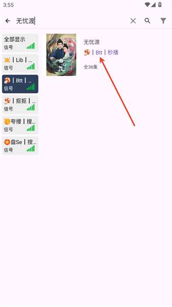 3、搜索出后有多种播放源可供选择。点击影视封面观看。