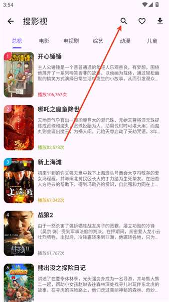 2、在点击右上方的放大镜按钮搜索你要看的影视剧名称。