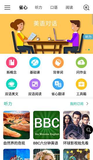 省心英语app提供了丰富的英语学习内容和多样化的英语学习方法,可以帮助用户更好地学习英语。支持双语字幕语音同步、单句循环强化听力、九格游戏听力练习等功能,有效克服听力困难。同时,特邀世界顶级专家授课。我们采用活泼幽默的教学风格和丰富的互动课件,彻底告别传统枯燥的学习模式,让课堂更具吸引力。致力于为学生和白领打造高效便捷的移动学习工具,帮助用户抢占先机。