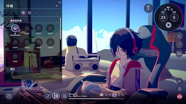 2、该游戏集成了基本的生产力工具,如待办事项、日历和笔记。玩家可以通过“环境”设置自定义当前时间段、窗外景色、环境声音等元素,营造个性化的工作氛围。