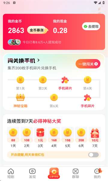 5、观看短剧,参与签到、分享、评论等活动,领取奖励红包。