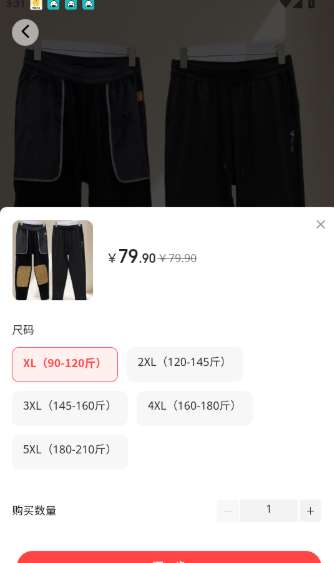 3、选择商品的尺码、购买数量点击“下一步”按钮进入下一步。