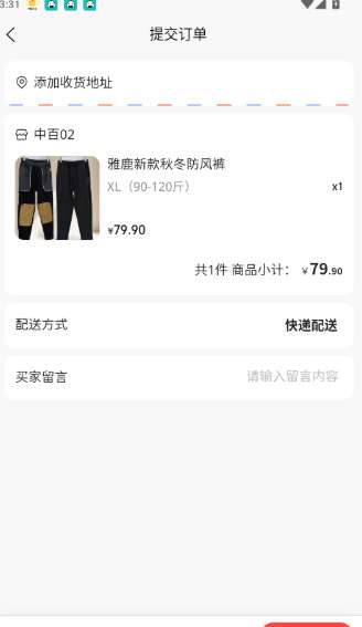 4、添加收货地址点击“提交订单”即可支付订单购买商品。