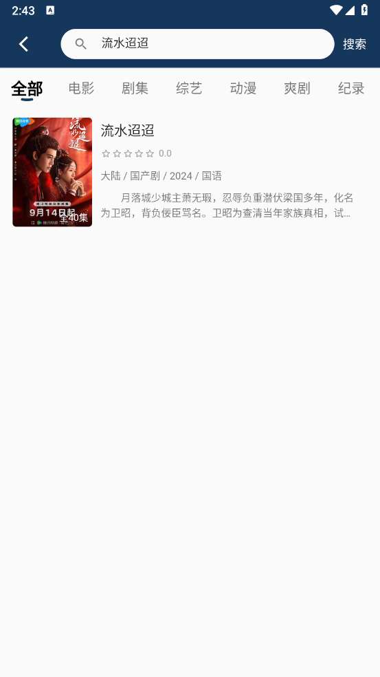 1、打开在本站下载的NUU影视app,自由浏览或者搜索想看的影视剧集并打开,比如小编打开的是“流水迢迢”。