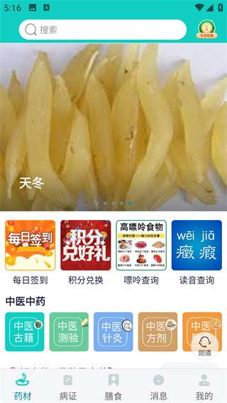 识药材app是一个专门为中医设计的移动工具,帮助中医学习和查询中医。该应用程序涵盖了中医百科全书的全面知识,以及丰富的学习材料和各种中医经典。它包含了一个丰富的中国传统药材数据库,伴随着详细的图形和文字介绍,以及实际功效的解释。同时,支持图像识别查询。这里也为大家推荐药膳配方,将根据季节和体质提供养生建议。您还可以使用扫描功能识别药材信息。您可以收集您感兴趣的药材,里面还有高质量的中医题库。