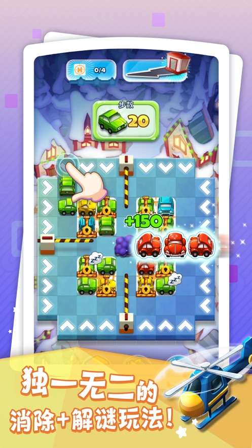 汽车消消消我时候晚上着汽车展开的游戏,在这里面还有两个交警的角色,在这里大家要做的就是把相同颜色的汽车移动消除在一起,并利用消除的特效,把一些障碍物炸开。这里面的关卡中会随机的设定很多,比较复杂的障碍物,还有就是一些新型特别的汽车。以城市道路设定的关卡内容在里面还会放置火车轨道等其他的障碍物品。