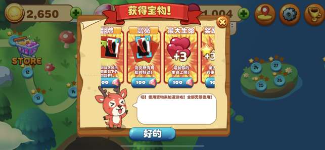 1、这里面还有一些道具,大家可以购买,或者是从宝箱中获得,什么生命值呀,翻牌的道具呀,高亮的道具等等。