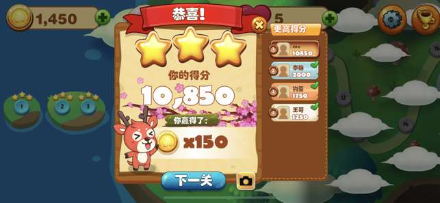2、每个关卡的板块中都可以看到最高得分的玩家,有你的好友,也有其他的玩家。