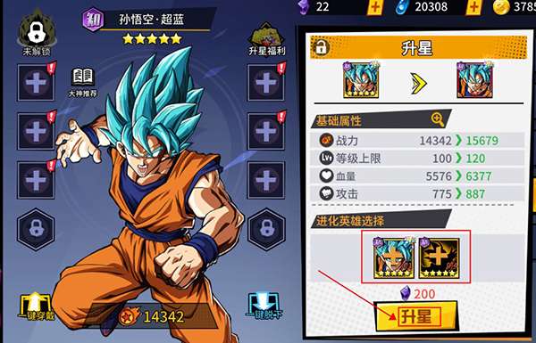 玩家在获取到多个英雄卡牌后,还可以使用卡牌对英雄进行升星,大幅度提高战力。