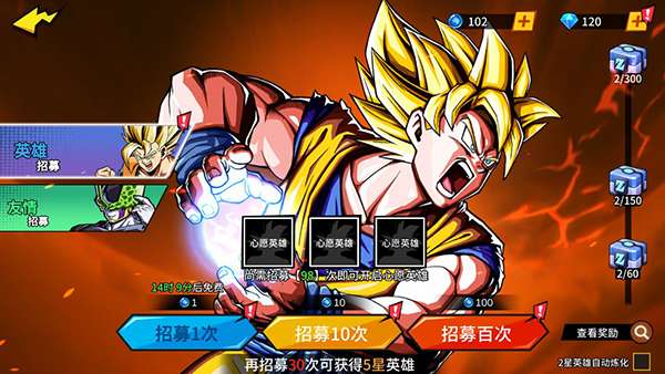 3、上线送8级Z战士、T0级LR孙悟空超赛5、百连抽、超赛材料包。