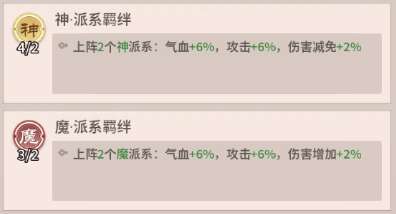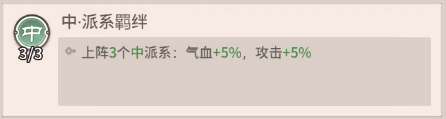 正·派系羁绊:上阵3个正派系:气血+5%,攻击+5%。