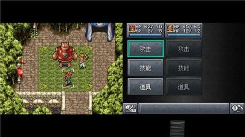6.两人走出王宫从加尔迪亚森林出来,往左走进入玛诺利亚修道院。与所有修女对话后,在神台前发现了闪光点,原来是加尔迪亚的一家纹章,然后所有修女变成了妖怪。利用露卡的火焰技能很容易就把妖怪打退了,突然露卡身后跑出来一只妖怪,正在这危急关头一只青蛙出现解救了危机,一阵对话后知道我们是来拯救王妃的,于是他也加入我们的战斗。青蛙是一个不错的帮手,它有恢复技能而且攻击相对较高,但速度比较慢。