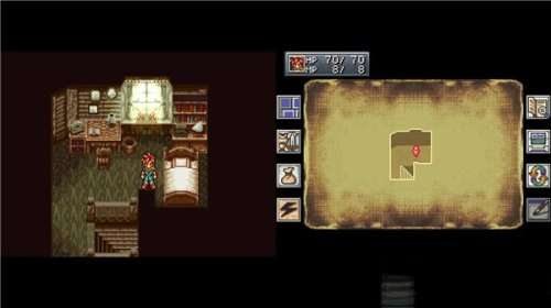 4.主角时空穿越回到了公元六百年,首先出现在一片树林里,这个树林迷宫比较简单很容易找到路,路上会遇到一些怪物都是些非常简单的角色,可以先熟悉一下战斗,路上还有几个宝箱。走出树林会看到一个小镇,里面有商店和旅馆,先到旅馆打听一下消息。之后走出旅馆进入上面的加尔迪亚森林。