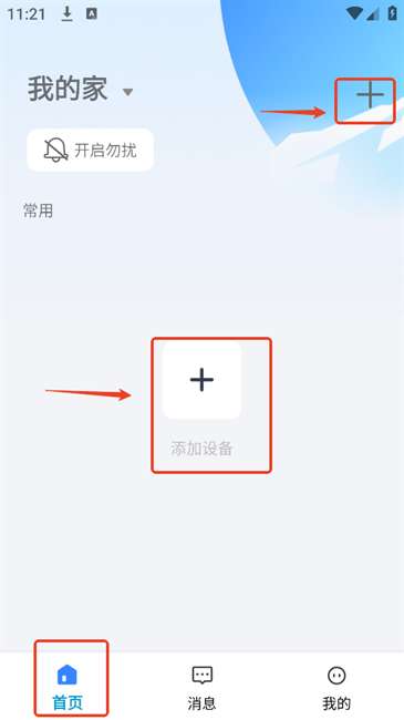 1、下载安装并登录进入大谷云后点击【首页】中间的“+添加设备”或是右上角的“+”号。