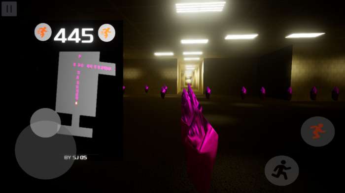 后室欺骗是一款同人恐怖冒险手游,游戏结合了《后室》的迷宫,为玩家打造了庞大的地图。在游戏中玩家将进入迷宫,收集四处散落的紫色水晶,迷宫中还有可怕的怪物会出现在各个角落追杀你,你要做的就是不断奔跑,甩开怪物并收集完所有的水晶成功通关。游戏玩法非常刺激有趣,非常适合喜欢逃脱类的玩家游玩!还加入了后室中的各种怪物以及关卡,每次通关都可以提高层数,并且要收集的水晶变多,怪物也将变得更加强大,非常具有挑战性!