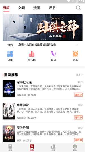 2、以下是对男女频道、漫画、有声读物、类别、排名等的建议。