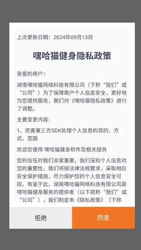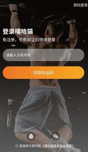 1、在手机上轻松下载并安装嘿哈猫健身应用程序,查看隐私政策,然后单击“同意”。