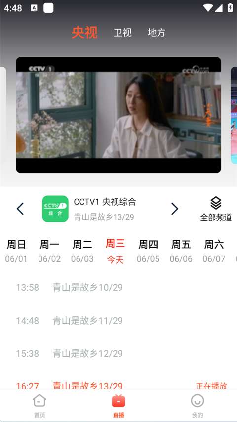 3、直播版块内可以看到当前频道的节目播放单。
