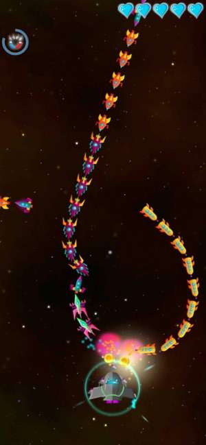 3、长按自己的飞船然后在屏幕上面左右的滑动就可以改变攻击的方向;