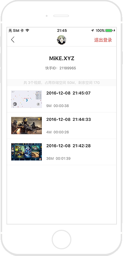 5)结束录制后伴侣会将录制的视频存至本地视频列表,点击首页的头像可以打开我的页面查看