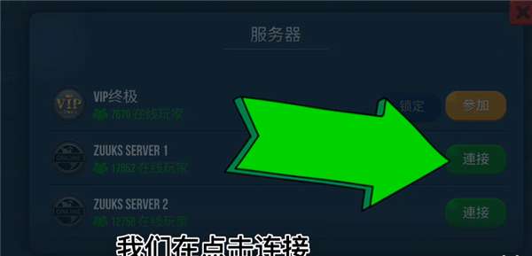 3、这里我们就可以看见3个服务器,除了最上面的能够服务器进不去,其他都可进入,这里小编点击进入第二个服务器,点击连接。