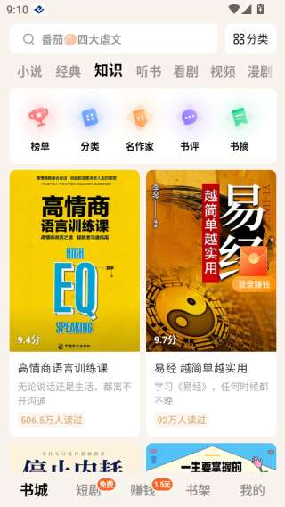 4、点击知识栏目,这里有各种知识讲解,书评、书摘等等。