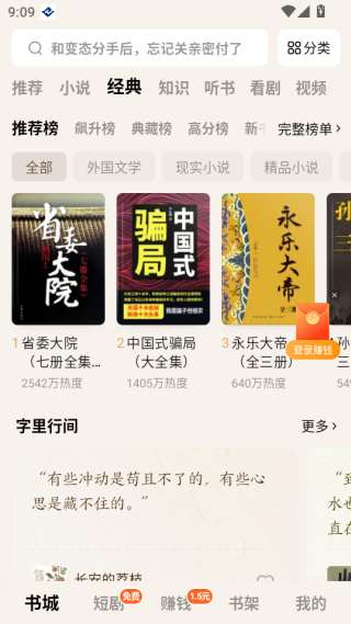 3、点击经典栏目,这里有很多经典的作品,如果你喜欢看经典文学,那么一定不能错过。