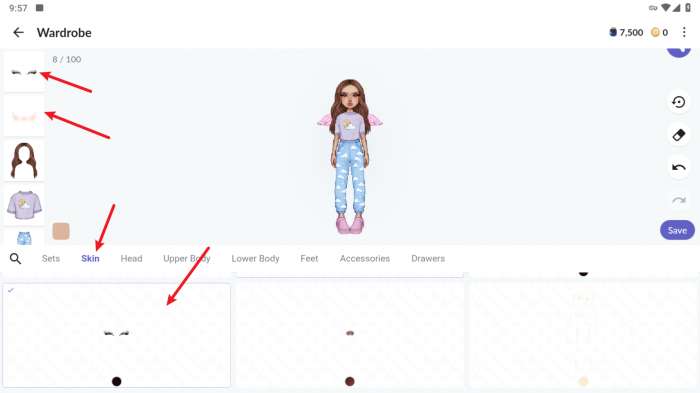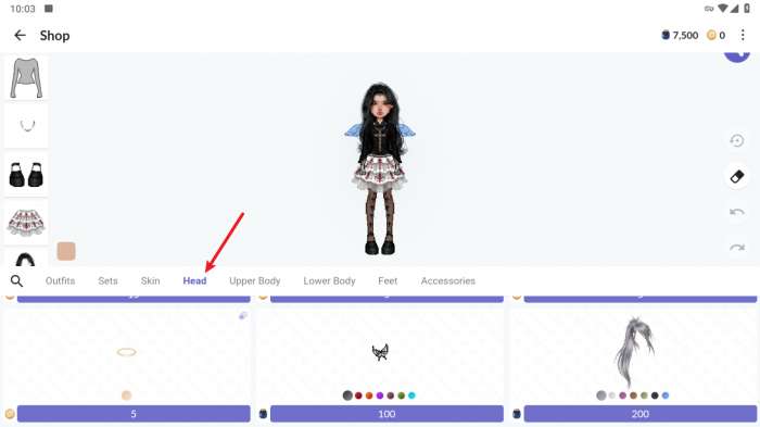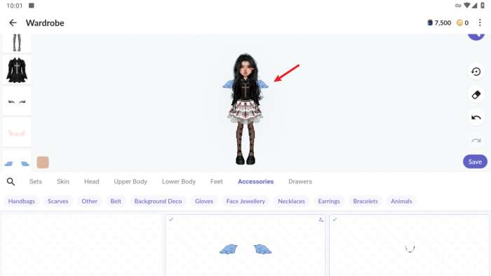 2. 挑选相应的栏目就能展开打扮,像此处便是针对面部所做的装饰。