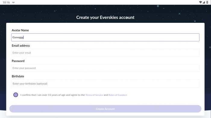 4、最后依照要求依次填入昵称、邮箱、初始密码以及生日,即可成功完成注册并登录。