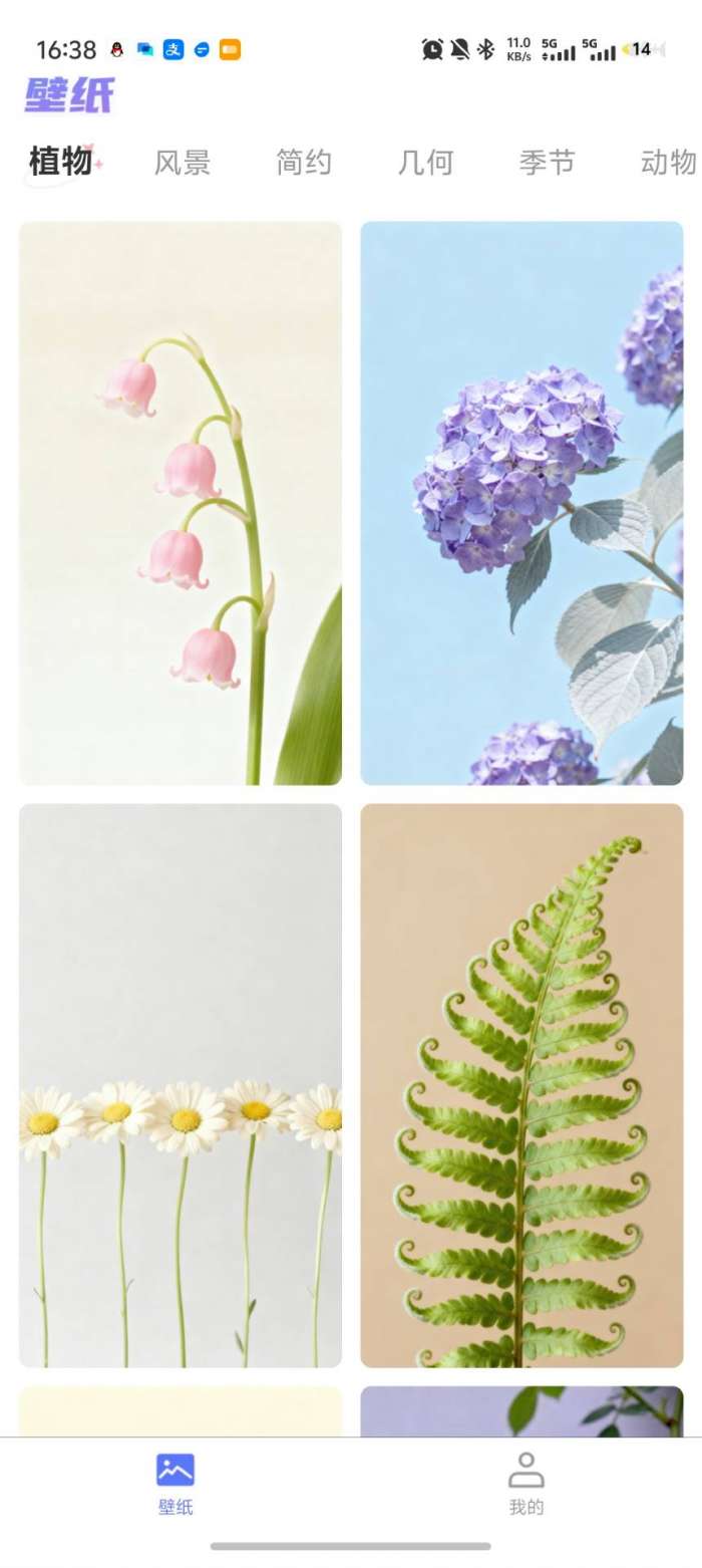 1、壁纸分类浏览功能,按植物风景简约几何等标签快速筛选壁纸。