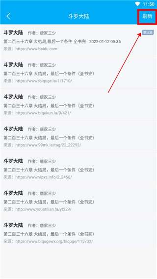 6、在显示的书源中选择一个切换即可,点击右上角的【刷新】还可以查看有没有其他新书源。