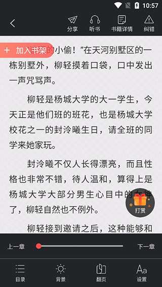 3、在阅读小说时,您可以根据个人喜好调整阅读设置,如字体大小、背景颜色、翻页模式等。