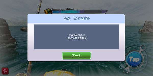 2、当鱼儿咬钩的时候,屏幕会有特殊效果,这时候点击右下角的【TAP】按钮来收杆。