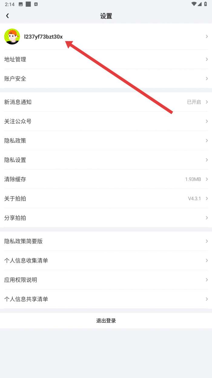 4、登录后个人中心找到设置入口,进入设置页面,点击个人账号选项,可进行账号相关信息查看或修改。
