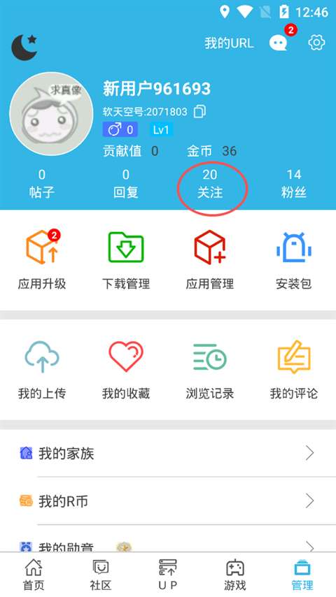 2、在管理页面找到「关注」功能,点击进入对应界面。