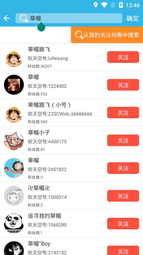 4、输入目标用户名称,检索并找到需要关注的 UP 主。