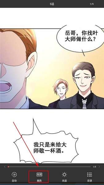 1、轻触漫画阅读屏幕出现菜单,点击画质。