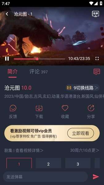 2、然后选择要看的动漫,点击播放按钮就可以了,比如小编追的沧元图;