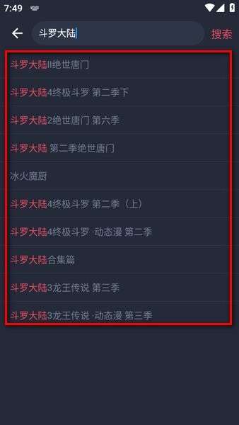 4、当然,大家也可以直接在搜索要看的动漫,比如斗罗大量,有多个下拉推荐;