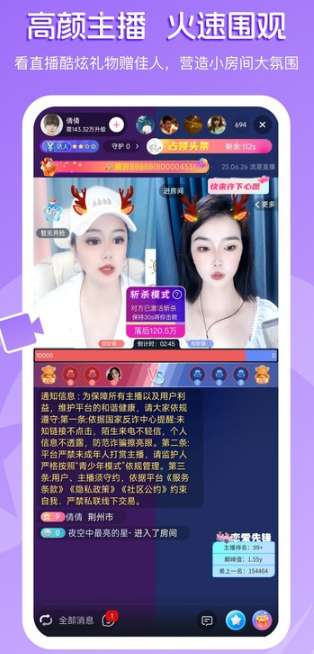 1、直播:用户可以实时观看主播的直播内容,包括游戏、唱歌、跳舞等。