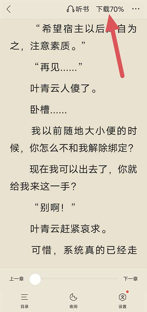 2、在阅读界面点击页面显示出功能后,点击右上角的“下载”。