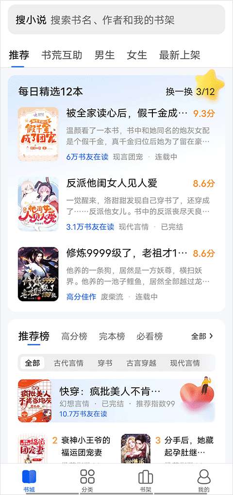 4、拥有千万小说电子书的小说软件:汇聚各平台的优质小说,种类繁多,个性化体验。