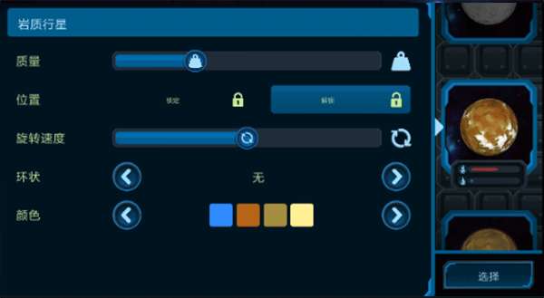 1、进入游戏后,首要任务是设置恒星。刚进入游戏时,仅有一颗岩行星,其他星球需满足特定条件方可解锁。