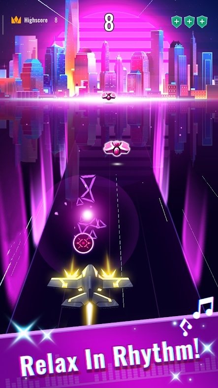 节奏飞行在这款游戏中,大家以控制飞机的方式来完成音乐节奏类的游戏挑战,过程中需要跟的节奏,去射击前方一而来的节奏障碍,就算完成后续就跟着节奏去设计就好了。在首页中,大家可以去选择不同的歌曲进行挑战,上面都会显示几颗星星,以及你玩过之后的分数显示。