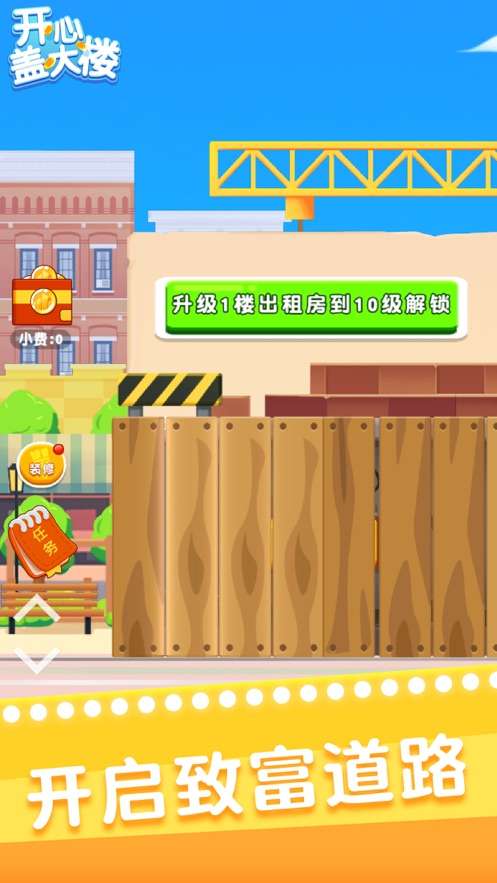 开心盖大楼这是一款模拟商业的小游戏,在这里大家可以拥有一个属于自己的大劳力层,一层的向上建筑,然后把每一层规划成不同的商业板块就可以了了,你可以再较低的层次安排一些商场,或者是一些门面出租出去在较高的楼层可以设定一些公司的办公场所,或者是公寓,分别安排不同的内容以及装修风格都可以为你带来很多新的收益,后面就是不断的积累自己的收益,来增加更多的楼层。