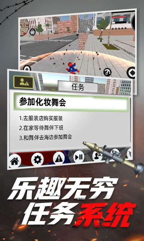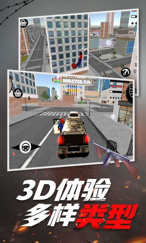 3、火柴人来拯救世界吧,化身超凡蜘蛛侠来制服城市中的罪犯们。