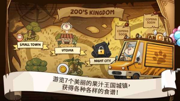 2、匹配,切换和组合水果,以获取更高水平的食物来喂养您的可爱动物。