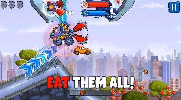 汽车吃汽车5(CarEatsCar3)是一款超有趣的赛车驾驶游戏,游戏拥有着各种超酷的战车,你可以驾驶着他们进行比赛。你的比赛不是那么简单的竞速,而是可以横行霸道,通过你的车把对手的全部摧毁而得到胜利。还拥有着超多的改造和升级,来一场超棒超爽的战斗赛车体验吧!